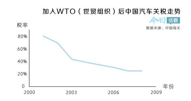 一方面,中国对进口汽车的高关税在加入世贸后已逐年下降