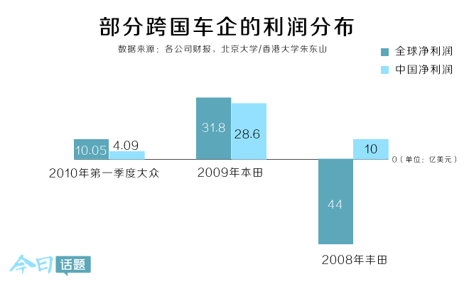 部分跨国车企的利润分布