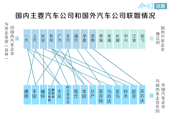 国内主要汽车公司和国外主要汽车公司联姻概况